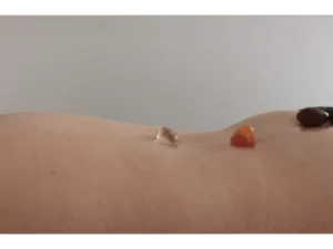 Ce massage est un mélange de manœuvres profondes et enveloppantes avec ou sans cristaux (jaspe rouge, cornaline, citrine, aventurine verte, calcédoine bleue, sodalite, améthyste)